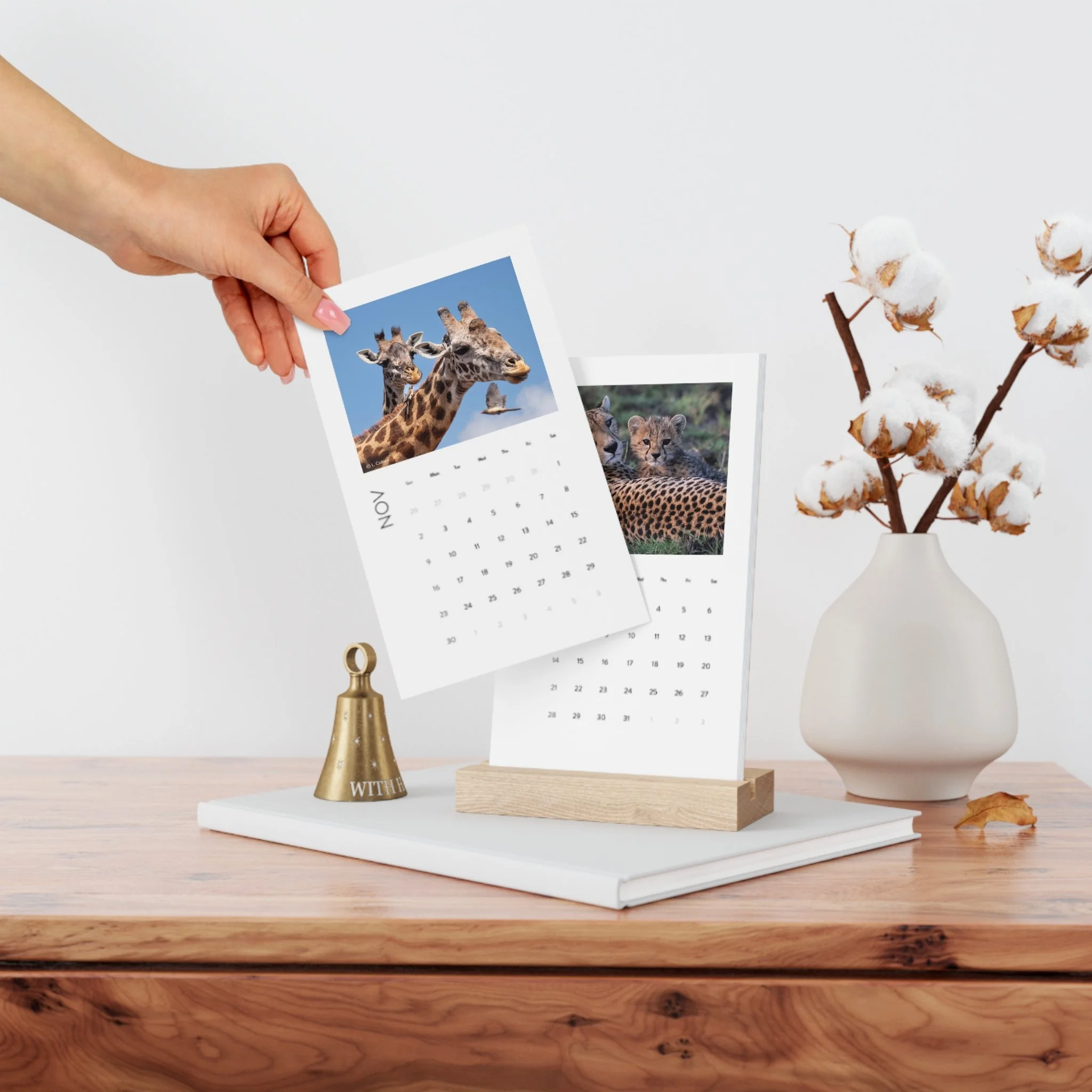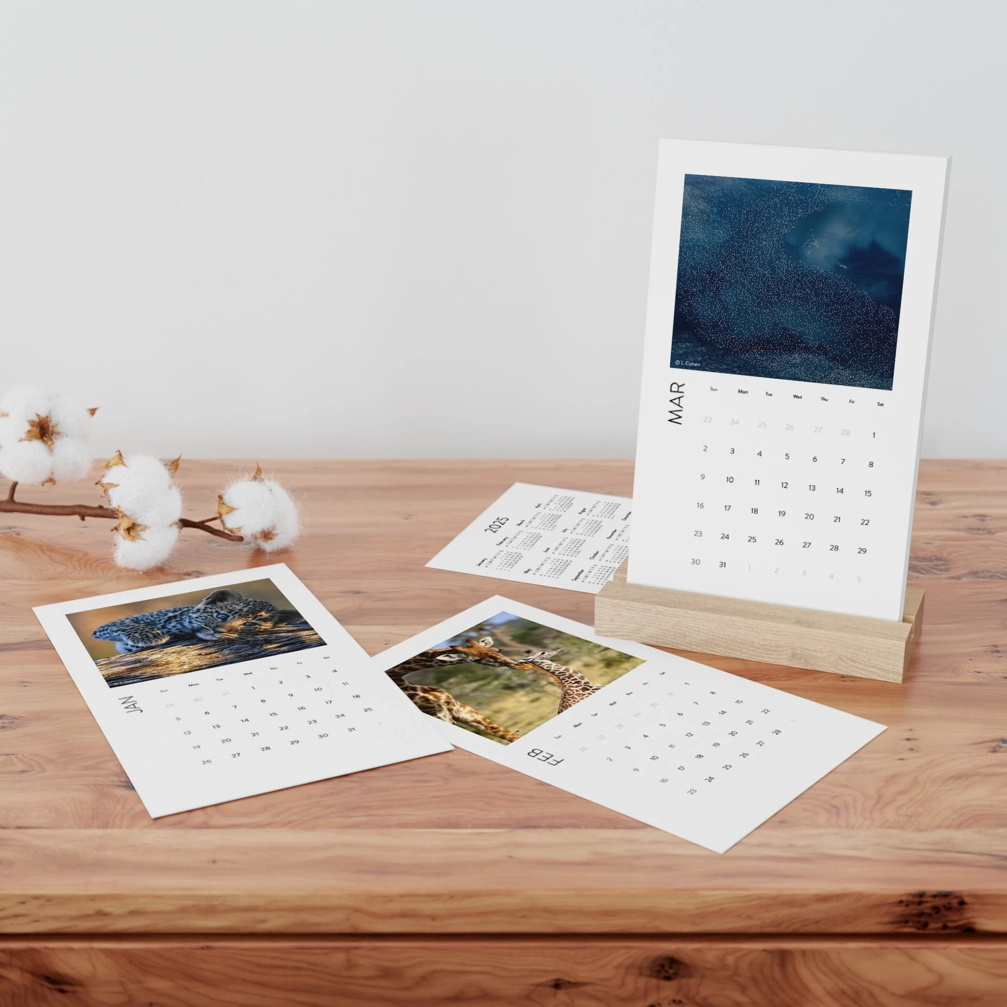 Start each month with a quiet moment. This vertical desk calendar pairs museum-grade, bright white matte paper with pigmented archival inks so each image stays vivid through sunlit desks and busy months. The slim 8.2" x 4.9" pages sit upright in a warm oak stand that brings a simple, natural edge to your workspace.